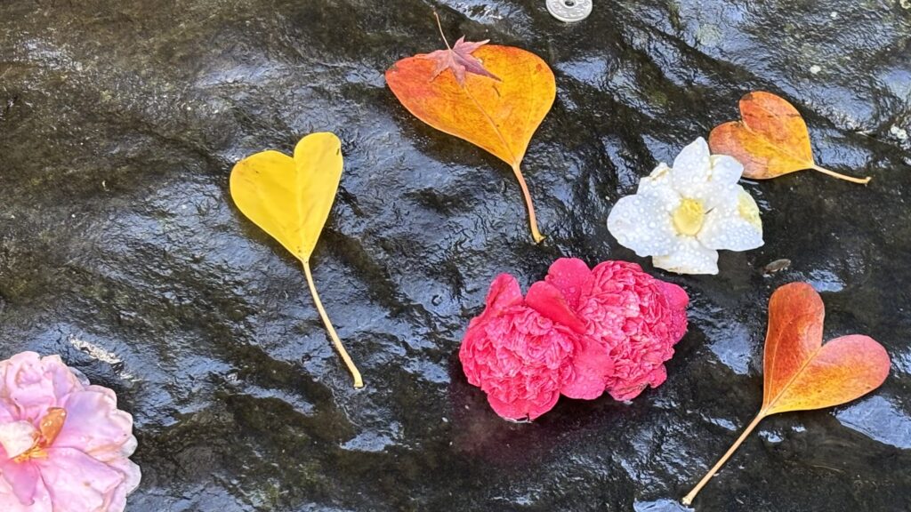 誰かがそっと置いたような、遊び心を感じる光景です。