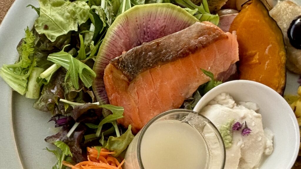 どちらも野菜が主役。1階のテイクアウトも優秀で、ホテルのお部屋でゆっくり「おこもり調律」をしたい時にも。