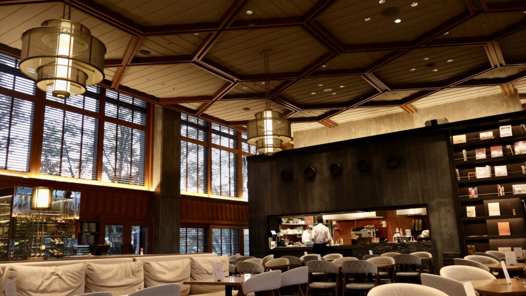 前川國男氏の建築美。高い天井の下、薪焼きの香りに包まれる時間は、まさに「知的な遊び」そのものです。