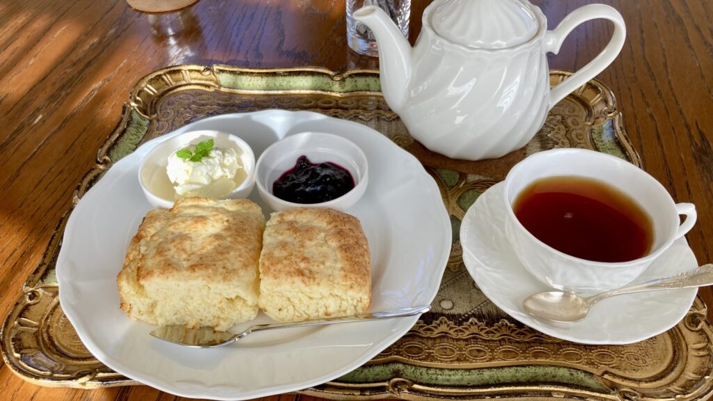 ヴォーリズ建築の洋館。スコーンと紅茶を待ちながら、窓の外の緑を眺める静かな調律。