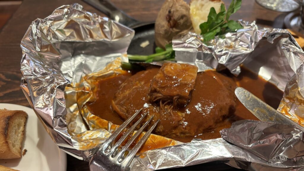 私のお気に入りは、ポルタの「グリルキャピタル東洋亭」。パンパンに膨らんだアルミホイルをナイフで開く瞬間、立ち上る湯気と香りは、大人になっても心躍るものです。